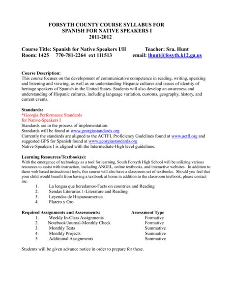 Read Online FORSYTH COUNTY COURSE SYLLABUS FOR SPANISH FOR NATIVE .. Kindle Editon
